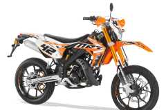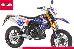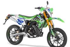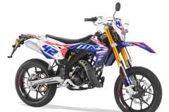 MRT PRO Supermotard 50 cc to zmodyfikowany MRT SM. Różnice polegają na zastosowaniu innego przedniego zawieszenia R16V, lepszych i wydajniejszych hamulców marki GALFER oraz aluminiowy sportowy tłumik. Całość ozdabiają różnego rodzaju dodatki w postaci rączek DOMINO, złoty gazowy w pełni regulowany amortyzator tylny oraz aluminiowe estetyczne hand bary.